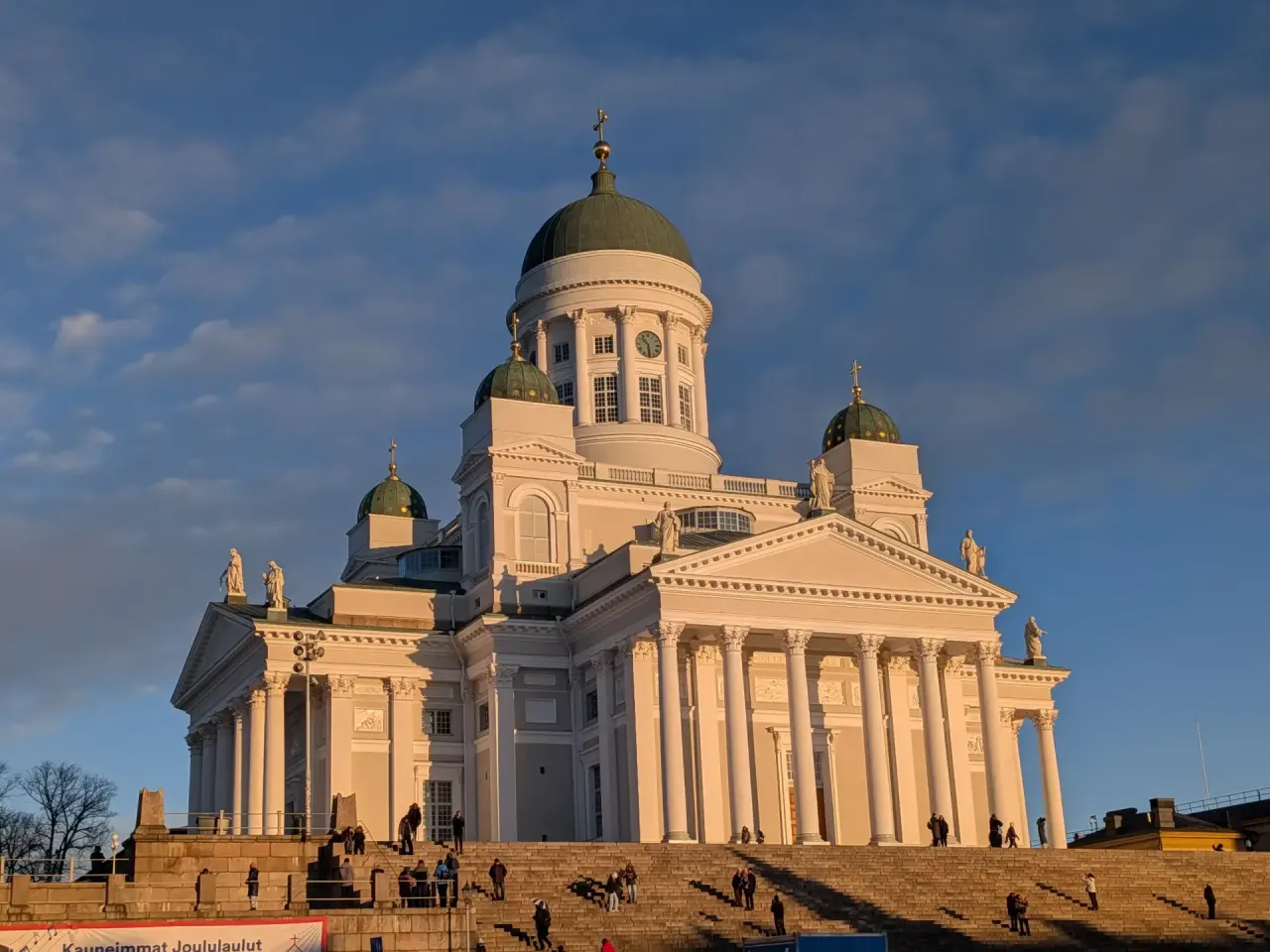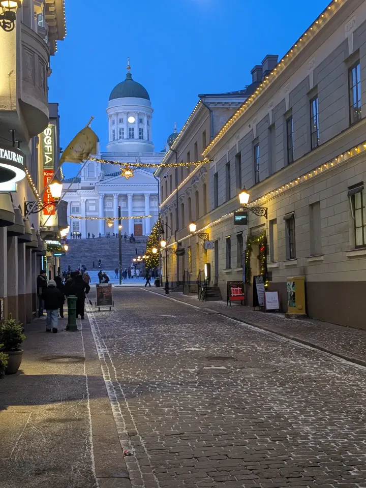 Wir ziehen uns warm an und laufen los. Die berühmte Felsenkirche - die finnische Version von Lalibela - ist fußläufig erreichbar. Was sofort auffällt: Es geht entspannt zu auf Helsinkis Straßen. Seit fast überall Tempo 30 herrscht, hat es keinen Verkehrstoten in der Stadt mehr gegeben. Vision Zero ist hier gelebte Realität. Die vergleichsweise wenig Menschen, die in Autos unterwegs sind, fahren aufmerksam und sehr zurückhaltend. Es ist ein wirkliches Vergnügen zu Fuß durch die Stadt zu laufen, selbst jetzt im Winter bei Temperaturen deutlich unter dem Gefrierpunkt.