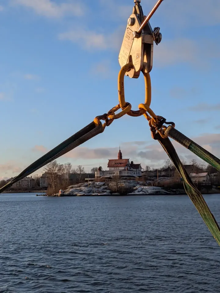 Trotz des Orkans landen wir mit nur 30 Minuten Verspätung in Helsinki an. Klarer Himmel. Es ist frostig. Auf dem Besucherdeck hat sich eine Eisschicht über die Planken gelegt. Mit einem Shuttlebus der Finnlines-Reederei werden wir durch das Hafengebiet zum Terminal gefahren. Das Terminal der Finnlines ist gut 15 Kilometer östlich der Innenstadt. Mit einem Bus fahren wir weiter zur Metro im Stadtteil Vuosaari.