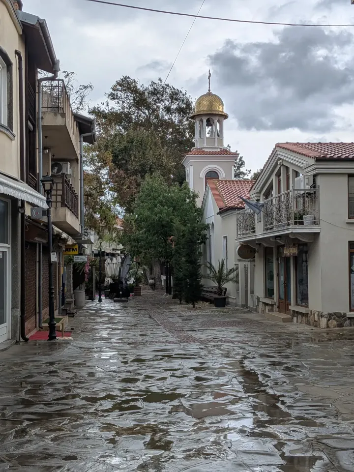In den leeren Straßen haben die Katzen übernommen. Zumindest hat der Regen jetzt aufgehört. Insgesamt wirkt die Stadt weit weniger touristisch als Nessebar. Der Blick auf die alten Holzhäuser erlaubt einige feine Fotos. Nach gut zwei Stunden sind wir wieder am Ausgangspunkt.